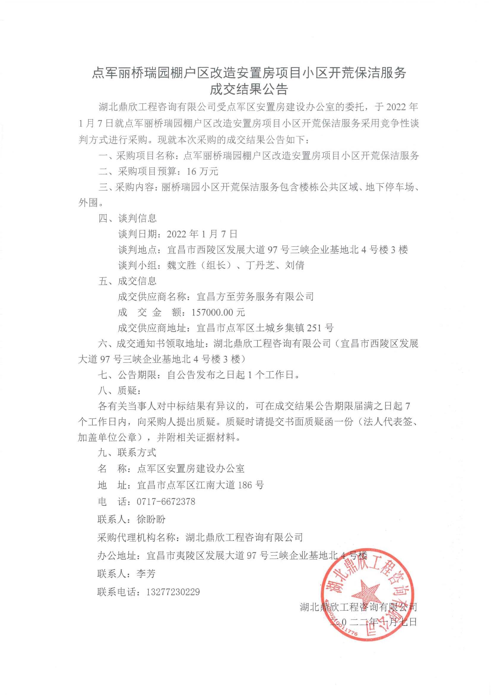 點軍麗橋瑞園棚戶區改造安置房項目小區開荒保潔服務成交公告