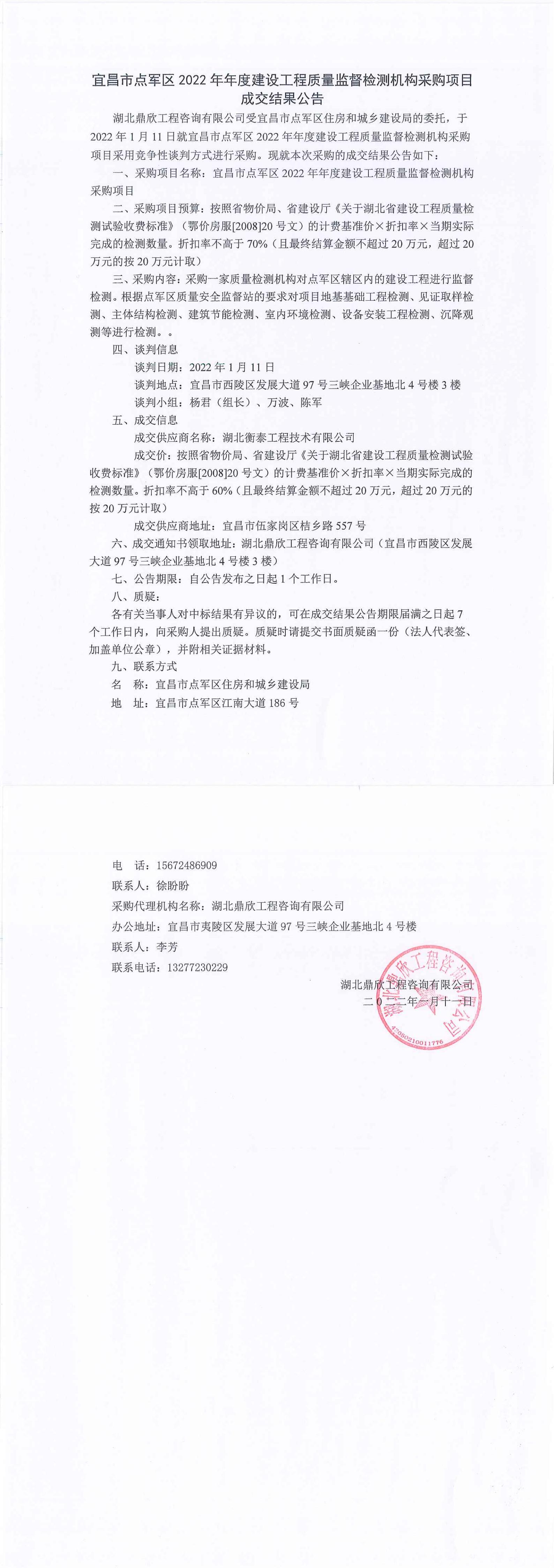 宜昌市點軍區2022年年度建設工程質量監督檢測機構采購項目成交公告
