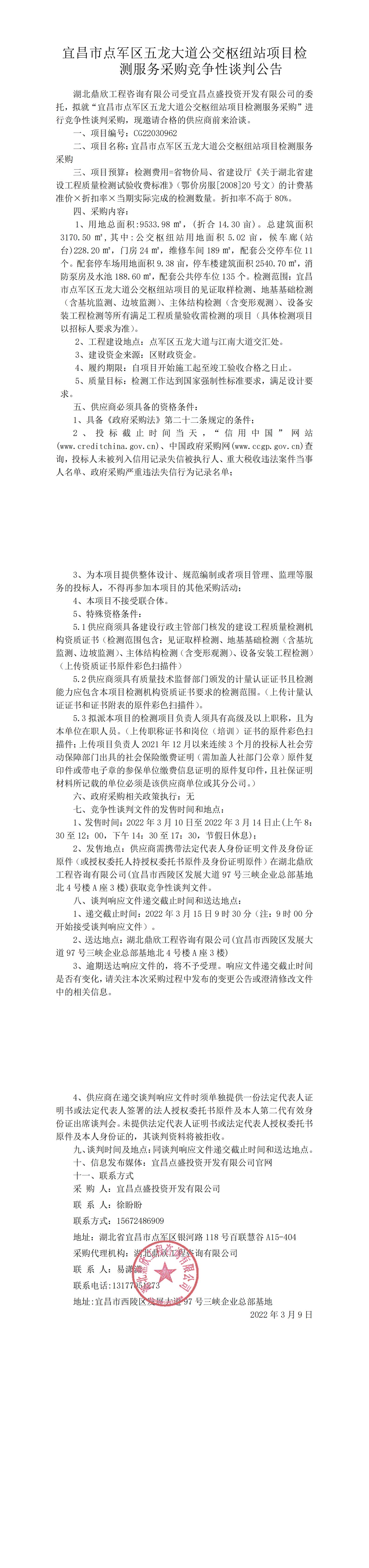 宜昌市點(diǎn)軍區(qū)五龍大道公交樞紐站項(xiàng)目檢測服務(wù)采購競爭性談判公告