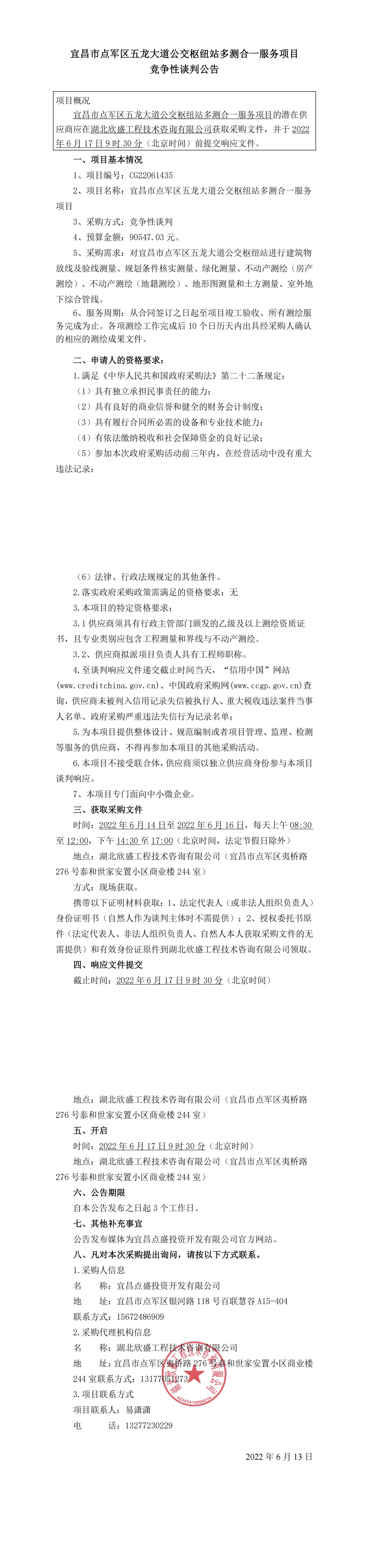 宜昌市點(diǎn)軍區(qū)五龍大道公交樞紐站多測合一服務(wù)項(xiàng)目競爭性談判公告