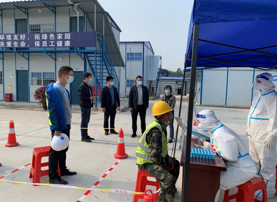區(qū)委副書記王建紅現(xiàn)場督導相關工作,高度肯定了這次工地核酸采樣試點工作。要求項目工地要堅守“幸福生活共同締造”信念,將工地設置自主核酸采樣點的方式推廣到全區(qū),讓工人們能不出工地做核酸,最大限度的保障疫情防控和項目施工兩不誤!