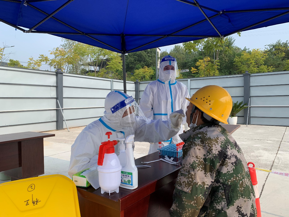 11月5日,為響應區(qū)政府防疫部門有關防疫要求,全面筑牢疫情防線,切實保障全體施工人員的身體健康和生命安全,點盛公司聯(lián)動點軍區(qū)橋邊衛(wèi)生院和國機集團在奧錦花園安置房(三期)項目部開展核酸采樣試點運行工作。取得核酸采樣合格證的奧錦花園三期項目安全員李懿、龍明超為本項目300余名工人順利的完成了核酸采樣工作。