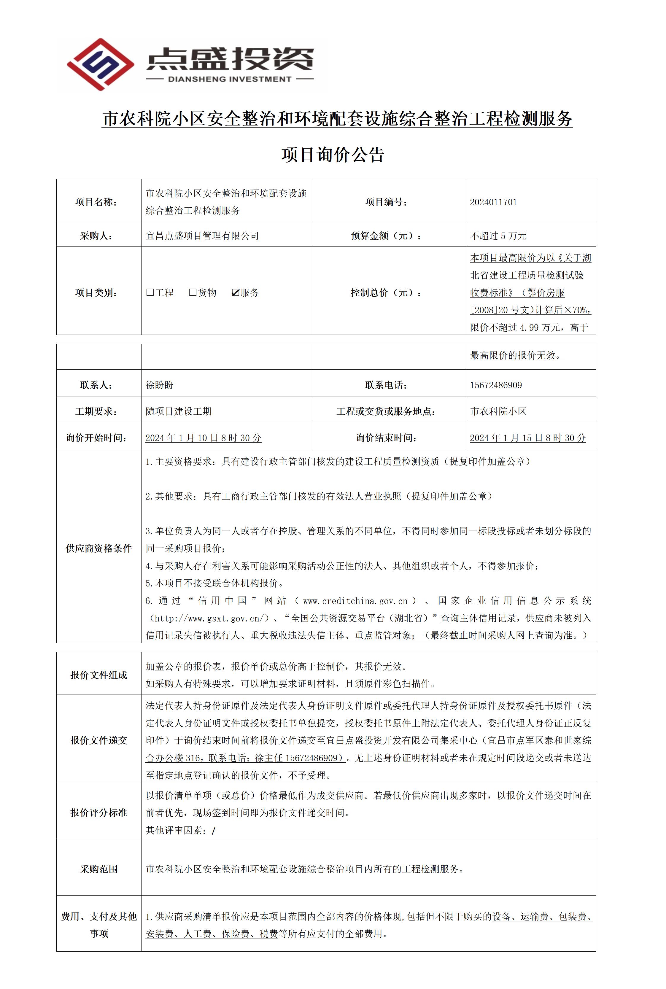 市農(nóng)科院小區(qū)安全整治和環(huán)境配套設(shè)施綜合整治工程檢測服務(wù) 項目詢價公告