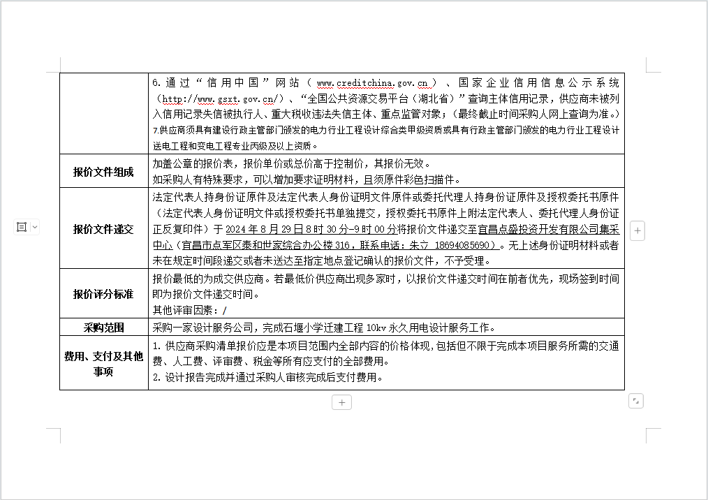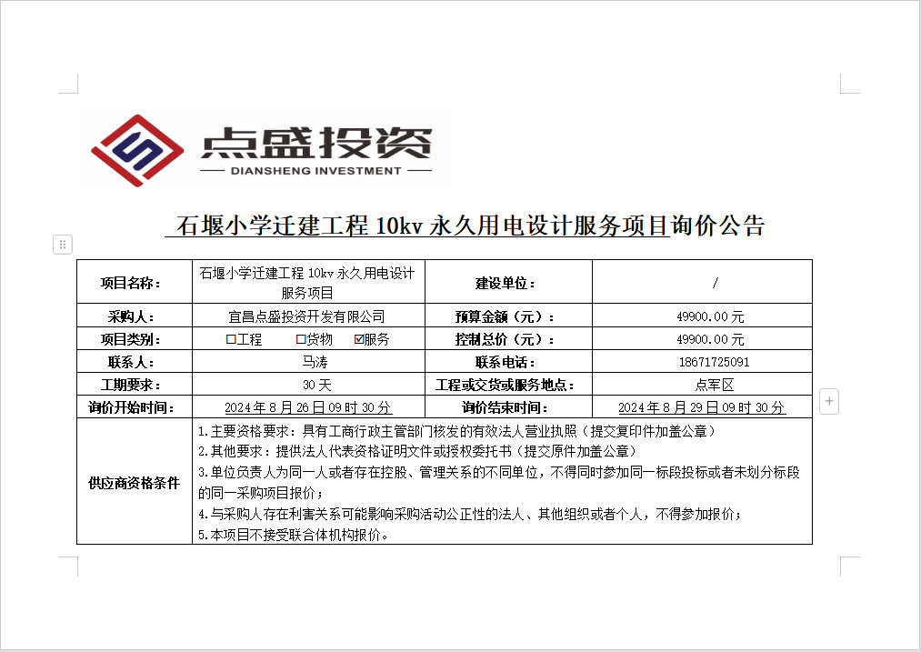 石堰小學遷建工程10kv永久用電設計服務項目詢價公告