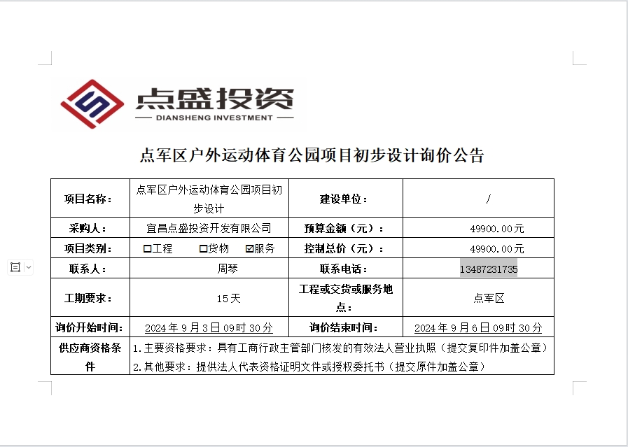 發布時間:2024/9/3 來源:宜昌點盛投資開發有限公司 訪問:6469