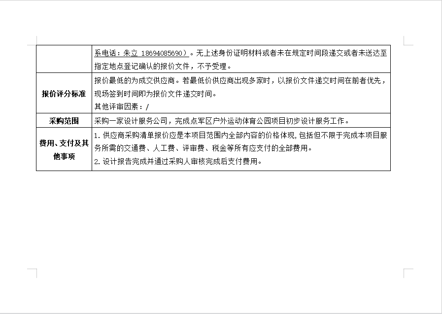 點軍區戶外運動體育公園項目初步設計詢價公告